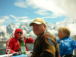 Monday we ate at the hotel and then drove south to Chamonix. It was raining so we did not get to see much scenery. I had made reservations at the same hotel where Cindy and I stayed last month and we checked into the Grand Hotel des Alpes. We decided to try to see the Mer du Glace as the cloud cover was low and mad it impossible to go up any of the lifts. We boarded the cog railway and got about half-way up the mountain when we had to turn back due to a rock slide on the tracks. It continued to rain so we stayed in the hotel most of the afternoon, but did venture out for dinner which included fondue which Cindy had never eaten. On