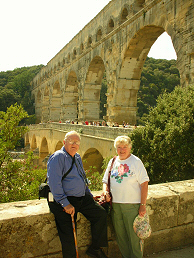 I followed the signs to Ales, driving about 25 KM. When I arrived in the town, I could not find any of the landmarks I had become familiar with during my last visit here two months ago. After driving around for 20 minutes, I realized that we were in Ales, not Arles, and I had driven in the wrong direction to the wrong town. Back on the highway, we passed through Nimes and finally arrived at our destination around 4:00 PM. I stopped at the Tourist Information Center and was directed to a wonderful hotel in the historic center of town. We checked into the Hotel D’Arlatan and went for a swim in their pool before venturing out to a small family restaurant for dinner. Friday we ate breakfast at the hotel and then walked over to the arena, one of the 10 largest ever built in the Roman Empire. We took a 45 minute tour around the town aboard the tourist train and then spent another hour shopping our way back to the hotel. We checked out at noon, but had one more meal in the square at the Café Van Gogh before starting back to Nice at 1:30 PM. We arrived in Nice at 4:00 PM, driving along the Promenade D’Angeles on the French Riviera. When we reached home near the port we unpacked the car, got Mom & Dad into the apartment I had rented them for the next week and then walked over to the port where we had another wonderful meal overlooking the yachts. |