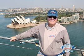 I spent a couple weeks recovering from the flu in Beijing, but did so in the comfort of a beautiful apartment at The Ascott - the new international affiliate of Equity Corporate Housing, my former employer. Ascott has locations in most countries except the USA so they seem to be an ideal partner for Equity. My major reason for going to Australia, other than the fact that I had never been there before, is to climb Mt. Kosciusko, the country's highest mountain and controversially one of the seven summits. My trip had a shaky start. I had booked a flight that left Beijing at 3:00 PM on October 11th and arrived in Sydney at 9:00. Not wanting to have to deal with finding a hotel at that time of night, I booked and paid for my first two nights at a hotel by Internet. When I arrived at the Beijing airport to check-in for my flight, I discovered that I needed a visa to go to Australia for which I had never applied. Fortunately, the people at the Special Service Desk of Air China were able to contact the embassy and get me an electronic visa before my flight left. When I boarded the plane, I found that what I thought was to be a six hour direct flight to Sydney was actually an 18-hour three-leg flight through Guandong and Melbourne which arrived in Sydney at 9:00 AM the next day. I read or slept for most of the flight. We had to get off the plane at both Guandong and Melbourne for about an hour which served to break up the flight and make it more tolerable. I collected my luggage upon arrival in Sydney and took an air-porter to my hotel in downtown. I checked into The Park Regis Hotel, which, although it has a good location, was disappointing otherwise. I took a bus tour of Central Sydney to orient myself. The 2-hour tour passed by most of the major sites and I disembarked twice, once to see the Star CIty Casino and again at a large Information Center to get some ideas as to what to do in the area. Sydney is a beautiful, clean city which I discovered as I spent about an hour walking back to my hotel. Wednesday I was up and out by 7:30 AM and headed over to 'The Rocks', a section of Old Sydney built by convict labor. The Rocks is the location of The Sydney Harbor Bridge, an international landmark spanning Sydney Harbor. One of the most exciting things you can do in Sydney is climb to the top of the bridge so I found the BridgeClimb office and signed up for a noontime ascent.