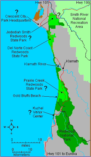 REDWOOD NATIONAL PARKS Click on Map to Enlarge |