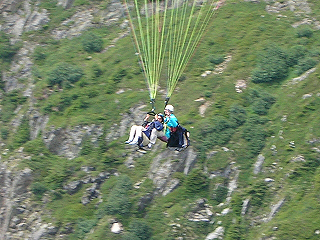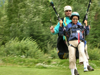 Cindy had been looking forward to going to Switzerland for a day, but this proved to be impossible without a visa, so instead I suggest she try parasailing. Although nervous, she was excited about this idea so when we returned to Chamonix, we went to our new hotel where the concierge was able to arrange an immediate flight. |