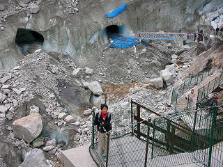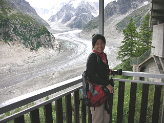 | Sunday we ate breakfast at our hotel and then walked over to the train station where we took the Montenvers Cog Railway 30 minutes up to the Mer du Glace. This 11KM long glacier varies in width from 700 to 1950 meters and is up to 450 meters deep. | |