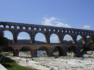 later. I hiked up to the Nice Observatory one day. It is situated on a hill overlooking the city and took a couple hours to get there. I learned that it is only open on Saturday nights, but would be an interesting place to go, especially when my dad comes to visit in late August. There is another observatory about five kilometers further in Eze, but I did not go that far. On April 30th, I took the train to Turin, Italy. I had to change trains twice, but arrived in Italy’s former capital six hours later. As my train was pulling into the Turin station, there was a huge commotion coming from another train that was just leaving the station. It turned out to be an entire train-full of soccer fans celebrating a victory by their local team, Juventus, earlier that day. I found a room at The Hotel Roma and visited the tourist information center to get some ideas as to what I could do in Turin. The northern industrial city is the site of the 2006 Winter Olympics and there is quite a lot of construction. I found a nice jogging trail along the Po River and went running twice during my visit. On Sunday there were large May Day celebrations in the main square. I walked up to the Museo dell’Automobile, a museum dedicated to the history of automobiles. Turin is the home of Fiat and was a major center of automotive manufacturing in past decades. The family who controls Fiat also owns the local soccer team and is much loved by the local people. I also visited the cathedral on Sunday afternoon to see the Shroud of Turin. There is a replica on display at the rear of the church, and the original is kept in a silver box in a chapel up near the altar. I returned to Nice on May 2nd. Cindy had a four-day weekend from May 5-8th so we decided to go to Western Provence. We took the TGV to Avignon where we found a room at The Hotel de L’Horloge, located inside the walls on the town square. The Palais des Papes towers over the square and was the center of the Christian world during the reigns of seven Popes who lived there instead of Rome in the fourteenth century. When we visited the palace, it was crowded with floral enthusiasts who were attending the French Rose Exhibition which was being held in the courtyard. Admission to the palace also included a visit to the Pont St. Benezet, or at least its remains as it was mostly washed away by flooding in the 1600’s.