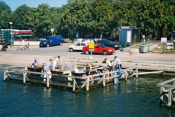 Friday, August 23, 2002 My hotel still cannot accommodate me on Saturday night so after breakfast I headed back to the Hotellcentralen at the train station to see about a room someplace else. En route, I passed the spot on Sveavagen where Prime Minister Olof Palme was assassinated in 1986 as he walked back home after a going to the theater with his wife. There is a small bronze plaque in the sidewalk marking the spot where it happened. His killer was never caught. I continued walking and came across a small hotel in the City Center named Hotel Terminus, where, on the chance they might have availability on Saturday, I stopped. Much to my surprise, they could accommodate me so I made a reservation. After checking on my luggage at the station and getting some more clothing for tomorrow, I went to the boat dock. After determining that the trip to Birka (the original Swedish Viking site) was a four hour boat ride, I decided to take the trip to Drottningholm (another Royal Palace in the countryside) instead. The boats left every hour so I had time to go next door and visit Stockholms City Hall while I waited. I have finally figured out that the Swedish word for hello is HEY. It has been very disconcerting having strangers say HEY to me all the time. The boat ride to Drottningholm was 50 minutes. This is the palace where the Royal Family actually lives. They use the palace on Gamla Stan only for official events. The palace is similar to Versailles on a smaller scale. I took a one hour tour of the interior and saw lots of portraits, etc. I also walked around the grounds for awhile, and then took the 2:00 PM boat back to Stockholm. Back in Stockholm, I walked two miles to Djurgarden, the island that encompasses the National City Park, formerly the Kings Royal Hunting Grounds. Djurgarden has three main attractions, The Nordic Museum, The Vasa Museum and Skansen. Skansen was open until 10:00 PM, so I went to The Vasa Museum first. The Vasa was a warship built in 1628 that sunk 15 minutes into its maiden voyage. The ship was raised in 1961, underwent 20 years of restoration, and is now housed in its own museum. It is one of the best museums I have ever seen. It was rather dark so I did not take any photographs, but they have a good website at http://www.vasamuseet.se/Vasamuseet/Om.aspx. By the time I left the Vasa Museum, the Nordic Museum was closed for the day, so I walked down to Skansen. Skansen is an outdoor collection of 150 historical buildings that have been collected from all over Sweden to document the history of life in the country for the last 500 years. It is similar to Williamsburg, VA with working tradesmen. Although the area is open until 10:00 PM, many of the exhibits had closed by the time I arrived. I walked around for a couple hours, and then walked back to my hotel for the night. Skansens website is www.skansen.se. Saturday, August 24, 2002