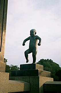 Li turned out to be a community of six homes, so I pressed on another 30 minutes to Aurland which was two or three times the size of Flam. I met a German hiker who told me there was a ferry back to Flam and since it was still threatening to rain, I decided to take the easy way back. I went down to the ferry dock just in time to see the ferry coming around a bend in the fjord and head for the dock. I was the only one waiting for the ferry and had just enough time to run into the grocery store to buy some water for the trip back. When I returned to the dock a few minutes later, the ferry had turned and was heading to Flam without me! There was no one there to complain to so I went to the local tourist information kiosk to see if there was any other transportation back to Flam. When I told him my saga, he said that if the ferry captain doesnt see anyone on the dock, hed often just pass on by. There was a bus back to Flam, but not for another 2 hours, so I decided to walk back. The sun did come out on the way back and I was glad I walked. From the trail I saw the ferry returning from Flam about an hour later, and gained satisfaction by shaking my fist at the captain as he sailed up the fjord. Tuesday, September 3, 2002 Today will be a travel day from Flam to Oslo. I checked out of the Fretheim Hotel after breakfast and took the 8:40 AM train up the Flam Valley to Myrdal. There, I collected my baggage and caught the 9:50 AM Signatur Train to Oslo. The ride to Oslo was about 5 hours, but the train was very comfortable and the scenery along the way was fantastic. The train arrived at 2:45 PM and after locating the luggage storage lockers, I went to the tourist office to find a hotel. The best hotel in Oslo is The Grand Hotel and when I discovered that I could stay there for half their normal rate of 1890 NOK, I took it. I walked up Karl Johans gate ten minutes to The Grand and checked-in. My room, and the hotel in general are very elegant. I was happy to see I could get CNN in English, until I turned it on and heard of the trouncing world stock markets are taking. I went out walking in Oslo, in particular down to the waterfront, where tours of the city originate. I came across a fascinating exhibit of photographs by Yann Arthus-Bertrand titled Earth from Above. I bought a dozen of the photographs in postcard form, so if anyone wants one, email me your address and I send you one. I walked by a McDonalds that was advertising the controversial McAfrika sandwich. Since Im going to Africa soon, I decided to familiarize myself with the food. After waiting in line for a few minutes, however, I realized the McAfrika sandwich contains meat, so I decided to pass. I had dinner at a café on my way back to the hotel. I did locate one Internet café, but it was very dark inside and I would not be able to type my journal in the dark. I also found the tour office and decided to take an all day tour of the city tomorrow. Wednesday, September 4, 2002 I had to return to the train station this morning to book another night at the hotel as the special rate was not available at the front desk. While there, I found an Internet café where I was able to type my journal. Durnig the 40 minutes I spent on-line, parametics feverously worked to revive a guy who had apperantly overdosed on something twenty feet away. I heard on the news this morning that Kaiko, the orca that starred in the movie Free Willy was released off the coast of Iceland six weeks ago, and has now migrated to the Norwegian fjords where he is attracting lots of attention since he is used to people and swims right up to docks and boats. Ill have to keep an eye out for him as I take my tour of the Oslo fjord today. The Boat tour started at 10:00 AM and after spending a few days up in Flam, the fjords of Oslo were boring. I also did not see Willy. The boat dropped us off at The Fram Museum, which is similar to the Vasa Museum in Stockholm. After lunch, we went to the Kon-Tiki Museum, then on to the Norwegian Folk Museum, a collection of Norwegian buildings gathered from around the country and preserved, much like Skassen in Stockholm. From there, we visited The Viking ships Museum, which houses three viking ships that are almost 1000 years old. Our final two stops were The Holmenkollen Ski Jump, which I climbed to get some good views of Oslo, and the Vigeland Sculpture Park.