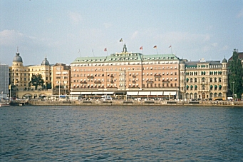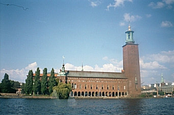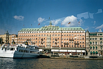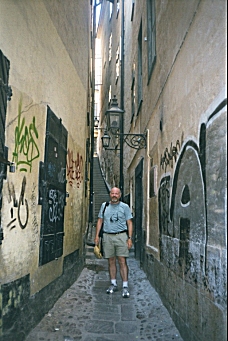 On my way back to my cabin, I saw someone who looked remarkably like Alex Willis singing ABBA at the karaoke bar, but he was much too good to be the real Alex. I heard an announcement that we were due to arrive in Stockholm at 4:30 AM, but would not disembark until 9:00 AM. Im actually quite pleased at my ability to understand Swedish, which I am sure I picked up by watching the Muppets on TV for all those years. There was also an announcement that the wind speed was 4 to 6 meters per second, which sounded pretty windy. Thursday, August 22, 2002 We docked at 4:30 AM and, knowing we were not scheduled to leave the ship until 9:00 AM, I went back to sleep. Imagine my panic when I woke up again at 6:00 AM to find the ship underway again! I quickly threw on some clothes and went topside to tell the captain he must turn around and take me back to Stockholm. It turned out, however, that we had not yet reached Stockholm and the 4:30 AM stop was at an outlying island in the Baltic Sea. So much for my understanding of Swedish! We had lost an hour crossing the Baltic. I was thinking that the approach to Stockholm was like traveling through the Thousand Islands in Upstate New York, but later found that Stockholms archipelago actually contains over 24,000 islands. I had a good place at the front of the ship as we approached the city. We passed the place where The Estonia ferry had sunk in 1994 drowning 852 people as it approached Stockholm from the Estonian capital, Tallinn. I had not passed through customs when I left Finland and assumed there would be someone at the dock to stamp my passport exiting Finland and entering Sweden, but there was nothing.