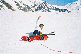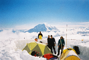 more night. At dinner we discussed signs and symptoms of various illnesses: AMS, HACE, HAPE. It is very common for everyone to get some form of AMS (Acute Mountain Sickness), which includes headaches, dizziness, and loss of appetite, HAPE includes symptoms Advanced AMS, HAPE or HACE are all reasons to go down immediately. There is considerable talk that the reason for climbing is the journey and not necessarily the summit. The last few days have been great and we are meeting many groups who have summated and on they’re way down. There is one Russian team on the mountain, which includes two paraplegic climbers in wheelchairs. The chairs have skis and the other climbers fix ropes and use hand levers to self pull them up. Also on the mountain in another ASM/ADG group consisting of 4 guides headed by Jim Williams and one climber; a New Jersey physician named Tom. Tom is raising money to combat thyroid cancer. They have a bunch of computer equipment and are posting an account of the trip to the Internet. For an analytical version of what it's like for a middle aged man to climb McKinley. WEDNESDAY, JUNE 19, 2002