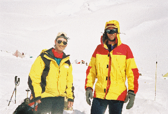 and set up the tent and had dinner. I went to bed immediately afterward. Tomorrow we plan to get the cache we left at 13,500 the other day so it should be an easy day. SUNDAY, JUNE 23, 2002 I was able to borrow Phil’s phone last night and place a quick call to Mom and Dad. They have been following an Alpine Ascents team that is posting updates via the Internet. That team #9 is a week ahead of us.