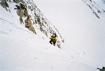 the bergstrund, and then roped up for the final 800’. The fixed ropes allowed us