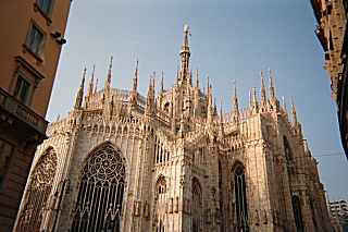 need in Hong Kong, then store the rest of my gear at Pam's house until I returned. Pam drove me back to Milano around 9:00 AM and I walked around the old section of town for several hours visiting The Duomo (Cathedral), The Sforzesco Castle, the shopping streets and the little church where Leonardo da Vinci painted 'The Last Supper' on the wall. After a few hours I went back to the Central Station where I caught a bus to Milano's Linate Airport. |