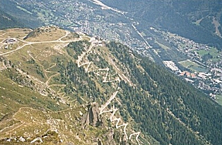 I got to the trailhead by 8:10 AM and started up. My plan was to hike up the trail to Plan Praz, the top of the first gondola, and then join 'Le Tour du Mont-Blanc' trail which continued up to Mt. Brevent, then descended to Les Houches. Les Houches is actually the next town over from Chamonix, at a similar elevation, but if I want to complete my tour in Chamonix, I've got to pick up the trail as close to Chamonix as possible. The elevation gain from Chamonix to Mt. Brevent was about 1500 meters and the day's hiking was about 22 km. |