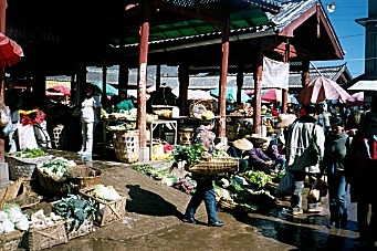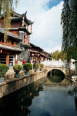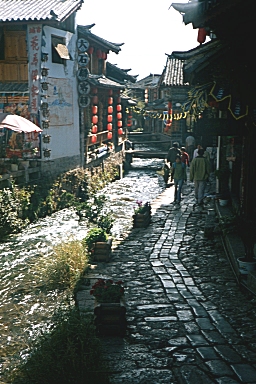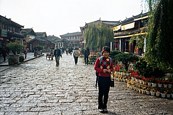 We decided to move to The Lijiang Jaquanhui Hotel in The Ancient Town tomorrow for two nights and then fly back to Shanghai on Wednesday. We purchased our airline tickets on our way back to the hotel. We played ping-pong and bowled a few games before having dinner at the western buffet for the second time in two nights. Monday, December 2, 2002 – Lijiang, China I had promised Cindy I would give her one more chance to try to beat me at ping-pong this morning, but the recreation center was closed. Instead, we went back and watched ‘Out of Africa’ on TV. We checked-out of the Guan Fang Hotel and moved to The Lijiang Jiquanhui Hotel in the Ancient Town just after noon. We had had such a good lunch at The Blue Papaya that we went back there for lunch again today. Afterwards, we continued our shopping in the little shops for most of the afternoon. At dinner, we went to a restaurant recommended in The Lonely Planet Guide and had pizza and lasagna. I spent some time on-line at the restaurant after dinner and then we walked back to our hotel for the night. Tuesday, December 3, 2002 – Lijiang, China