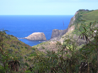 endangered state bird, which came within a few feet of me as I hiked. Sunday, 11/20, I packed up my tent early and headed down off the mountain. I was able to check into the Maui Seaside Motel early. After showering, I went to the Maui Mall for a while, and then returned to the comfort of the pool. I stayed at the motel until noon on Monday when I checked out and drove 80 miles up the Hana Highway, past the town of Hana, to the small section of Haleakala National Park which borders the ocean. Referring to this road as a highway is a huge misnomer. Although it is paved, there are probably 15 miles, which is only one lane. It seems there is a blind curve every ¼ mile and with traffic flowing in both directions, it took over three hours to reach the park. I located a campsite near the ocean where I setup my tent and spent the afternoon reading.