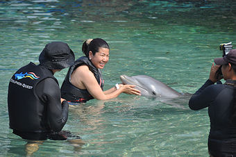 shore taking photos of her dolphin encounter, which she enjoyed very much.