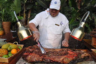 featured a Hawaiian barbecue and show. The hula dancers were very good but