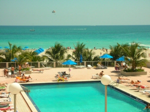 the space shuttle, and NASA postponed the launch to make repairs. Tuesday I drove down to Palm Beach and found a Best Western on the beach, which turned out to be a dump. The sand at the beach is too soft for running and it angles down steeply at high tide so I had to run on the sidewalks. On the last day of the month I went on to Ft. Lauderdale where I spent the night at The Ft. Lauderdale Beach Resort. The name makes it sound much better than it is, and the beach here is also too soft for running. On March 1st, I headed back to Miami Beach.