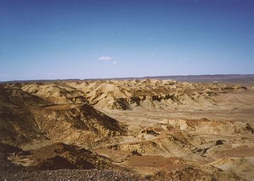 Thirteen hours into the trip we reached the point where we crossed from Chinese Inner Mongolia into Mongolia, which the Chinese still refer to as Outer Mongolia. The Chinese trains run on standard gauge track while the Mongolian trains run on the Russian narrow gauge track. So in order to facilitate the change, our 10 carriage train was driven into a building, the cars were separated, and four large lifts raised each carriage (with us in them) about six feet in the air while they changed the wheels. The whole process took about an hour. This stop was also the first of four passport checks we would go through during the night. I slept as well as could be expected on a moving train and awoke just as the train was entering Saynahand. We stopped for about 20 minutes, just long enough to get out and stretch our legs, and then continued north through The Gobi. I had read that Mongolia is supposed to have about one person per square kilometer, but I couldn't see anyone. At 9:00 AM we reached Choyr, the last stop before Ulaanbaatar. The station was crowded with children selling water and other things the tourists might need.