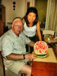 Monday we went to Monaco. I wanted to go by boat so we could see the coastline, but driving gave us more flexibility. I dropped them off at the Exotic Gardens and parked the car. Both Mom & Dad did a great job walking down and up the steep embankment which is covered with all types of cacti. We drove over to the Royal Palace and boarded a tourist train which took us through the entire country of Monaco in 40 minutes. Before lunch we toured the Maritime Museum & Aquarium and then Mom & Cindy went on the palace tour. Our final activity was to watch a documentary film about the history of Monaco and the Grimaldi Family. We got home around 5:00 PM where Dad carved a watermelon and cooked dinner.