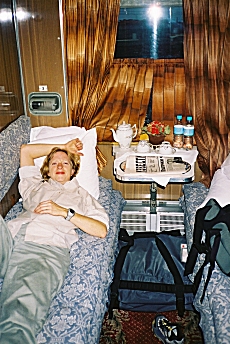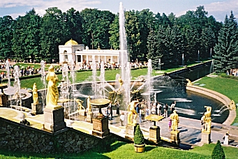 Friday, August 2, 2002 Today is Dad and Carolyns birthday. It is my last day at The Hotel Ukraine in Moscow and I must check out by noon. My train to St. Petersburg doesnt leave until midnight so Ill have to plan things to do all day. Im hoping to learn the Moscow subway system. I set off from the hotel after breakfast and walked to the nearest Metro station - about 10 minutes away. I bought a ticket for 5 rubles (about 15 cents) and joined the throngs of people descending an escalator that was so long; I could not see the bottom. After a few minutes I got to the ground and continued to follow the crowd looking for the brown line which forms a loop around the city. The subway was packed and it was difficult to read the names of the stations in Russian (my guidebook is printed in English and the English translation of the Russian words are not even close to how they actually appear - although they are not as difficult as Chinese). I ended up doing the easiest possible thing, one complete loop of the city and I got off exactly where I started. I got back to the hotel and after learning it would be 'impossible' to extend my checkout time; I packed my stuff and took it to the luggage storage room. I'm planning on just taking a few things to St. Petersburg, as I'll be returning to Moscow with the group the next day. I'll leave most of my things at The Hotel Savoy in Moscow where we'll be staying Monday night. Once I checked out, I had ten hours to kill so I headed back out to continue my exploration of Moscow. I thought I'd check out the Hotel Savoy and since I knew it was within walking distance of Red Square, I headed there first. Wally Berg had mentioned in an email that 'everybody knows where The Hotel Savoy is', however, I can report that there at least 22 people in Moscow who have no clue as to where it is. (I later learned it was formerly known as The Berlin Hotel). After a couple hours, I found it myself - just around the corner from the former infamous Lublinka prison (headquarters of the KGB). It is a very nice hotel. I did not see the rooms, but the lounge and business center where I spent a couple hours was very comfortable. At 5:30 PM I took a taxi back to The Hotel Ukraine because it had started to rain, and had dinner at a small elegant restaurant in the hotel. After dinner, I sat in the lounge for an hour listening to an excellent pianist, until my driver picked me up at 10:30 PM. We took two of my bags over to The Savoy, and then continued on to the Leningrad (St. Petersburg) train station. Train stations have the name of the final destination of the line, so in St. Petersburg, I will arrive at The Moscow station. My driver got me to my correct train and car then departed. I boarded and found my berth - a lower bed in a 4-berth compartment. I was pleased to find that two of the three other occupants of my compartment spoke English, but was forced to stay up conversing longer than I would have liked. The train left exactly on time - 11:55 PM and we all finally went to sleep. I slept well on the eight-hour ride to St. Petersburg. I was the first one awake in our compartment and walked up a couple of cars to the dining car for coffee, but was told it was closed. We got into the station at 8:00 AM and one of my compartment-mates showed me how to walk from the station to my hotel - The Corinthian Newsy Palace - only about 10 minutes away. The hotel is on Newsy Prospect, the 5th Avenue of St. Petersburg. I was able to check in at 8:15 AM, called Wally in his room and arranged to meet in the restaurant where three other members of the group (Jack, Jim and Cindy) had assembled for breakfast. We were all anxious to see St. Petersburg and Wally suggested that we drive out to Peterhoff - The Grand Palace, used by the Romanovs as a summer retreat. Jack negotiated a private tour for us and we agreed to meet in the lobby at 1:00 PM. Jim is my roommate and had arrived without his luggage. Air France had no record of it, but when I learned he had started with Delta from Atlanta, I emailed Mike from my McKinley trip who works at Delta, and he quickly emailed back that luggage was backing up at the Paris airport, but he would do whatever he could. The luggage finally showed up at 10:30 that night - so thanks Mike for your efforts!