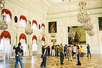 Sunday, August 4, 2002 This morning I went jogging for an hour then spent a half-hour in the hotel's fitness center on the 8th floor. After breakfast we had our first team meeting discussing logistics of the trip to Moscow tonight, and the flight down to The Caucasus on Tuesday. Mt. Elbrus is near Georgia, just north of the Chechnya border, between the Black and Caspian Seas. I spent a couple hours at an Internet café typing this journal. At 1:00 PM we all checked out of the hotel and went for a tour of the city with a guide. We walked down the Naves Prospect to the Hermitage where we spent several hours touring one of the best museums in the world.