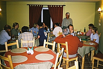 Dinner is at 7:30 PM in the hotels dining room. After dinner, Hynek, Ryan and I played cards for awhile before going to bed. Thursday, August 8, 2002 Today after breakfast we boarded the bus for a short ride to another trailhead in the same valley for another acclimatization climb. Julies knee was bothering her so she elected to stay behind.