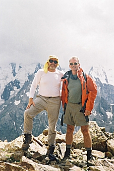 Saturday, August 10, 2002 We were woken up at 4:00 AM, had a light breakfast, and set off for Gumachi Peak at 5:30 AM. We walked along the lateral moraine and reached the glacier by 7:00 AM where we put on crampons and continued up.