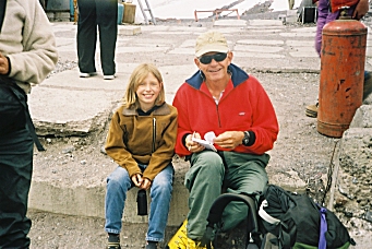 Dinner was at 7:30 PM and consisted of pasta, beef, cheese and peas. Wally has been hounding the Russians to provide us with more drinking water but it seems to be very slow in coming. Russians apparently dont believe in drinking large quantities of water at altitude, preferring, in some cases, vodka. Im glad I brought a couple bottles of water from the hotel. We went to bed early at 8:30 PM. Monday, August 12, 2002 We woke up at 6:00 AM and had breakfast at 8:00 AM. Leila is feeling better this morning, but still decided to take a day off to further recuperate.