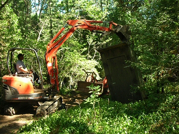 tearing down her outhouse. Before leaving, Ayden and I picked a bushel of