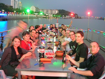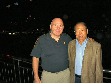 I had gotten a cold during the last 24 hours and decided to skip Sunday’s sightseeing excursion to Thousand Island Lake. Cindy still had to pack everything she wanted to take to America so she went home while I rested at the hotel. Monday morning we checked out and took a charter bus one-hour north to Hangzhou. We had arranged eight rooms at the Mingtown Hostel where we have stayed on previous visits. Cindy’s parents came with us to enjoy these last few days together during the Chinese National Week holiday. Hangzhou was absolutely packed with people. We spent three days there and everyone enjoyed their stay. One day we rented bicycles to ride around the lake, but would often have to dismount due to the crowds. On the last night I took Cindy’s parents, Hua & Jerome and Sophie out to dinner at the Hyatt and then we went to the Impressions West Lake show, which was a nice way to conclude our visit. Thursday we said goodbye to Cindy’s parents and boarded our bus for the four-hour ride to Shanghai. We had decided to take the long route, which would take us over the new Hangzhou Bay Bridge, a 36-kilometer span, which is the longest sea crossing in the world. We arrived in Shanghai around noon and took a short tour of the Bund before arriving back at the New Harbour Apartments where we would spend the night. The French group spent the day visiting the antiques street, cricket market and other tourist venues. Cindy and I started organizing all the stuff we will try to bring to America. The French left the next evening for the 11:00 PM flight to Paris. Cindy and I stayed in Shanghai one more night and then left on Saturday for the flight to San Francisco. |