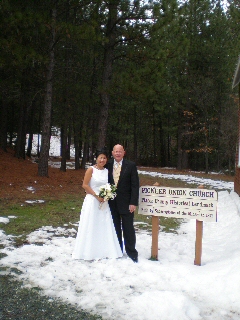 After flying in from Miami, we spent a week at my parent’s house in Novato. We set-up their Christmas tree and decorated the house. Between downpours I was able to complete a few projects in the yard. We also visited several shopping centers to buy gifts and last minute wedding supplies. One night we had dinner with a neighbor, Doris, who has spent some time working at a hospital near Cindy’s hometown in China. She invited Cindy back to her home to see her Chinese furnishings which Cindy’s thought remarkable. On December 22nd, we packed a car full of gifts and wedding supplies and drove up to Colfax. Mom and Dad will follow tomorrow with another car full of food for the reception. We stopped in Auburn to meet with the woman who was baking our wedding cake and gave her some last minute instructions, then continued on to Carolyn’s house where Fred made dinner for everyone including BJ and Halley.